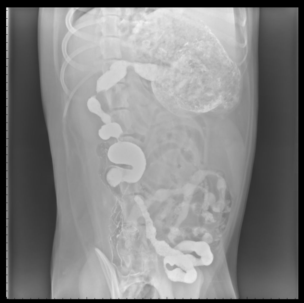胃肠造影显示回肠盲肠升结肠横结肠正位片